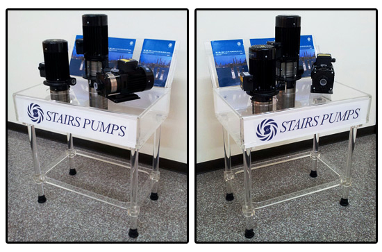 . 宏奇泵浦工業有限公司之產品,置放於拆卸式壓克力展示桌上。